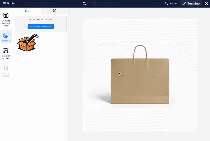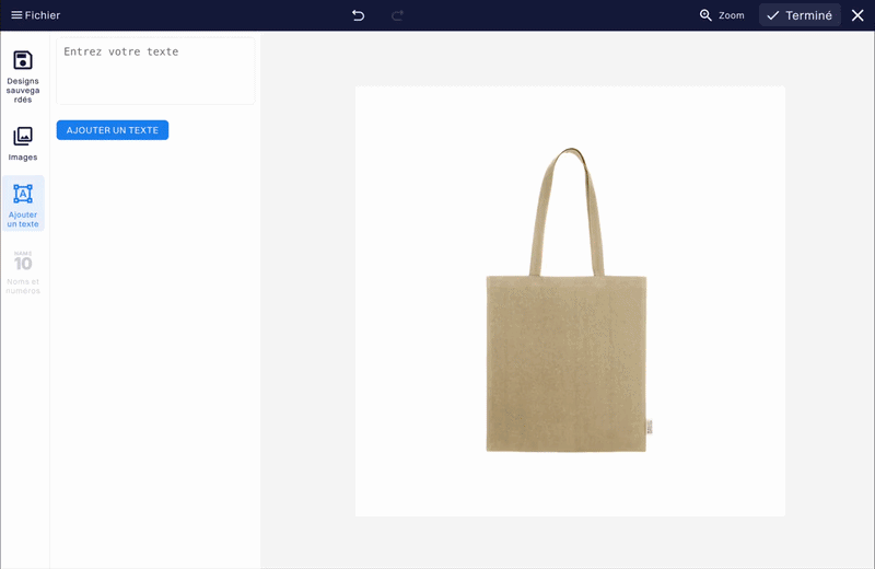 Positionnez votre logo et vos textes sur nos gabarits 2D. Simple, fluide, et suffisant pour transmettre votre intention.